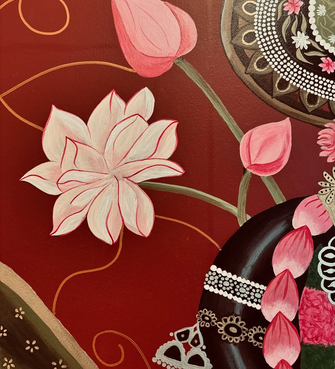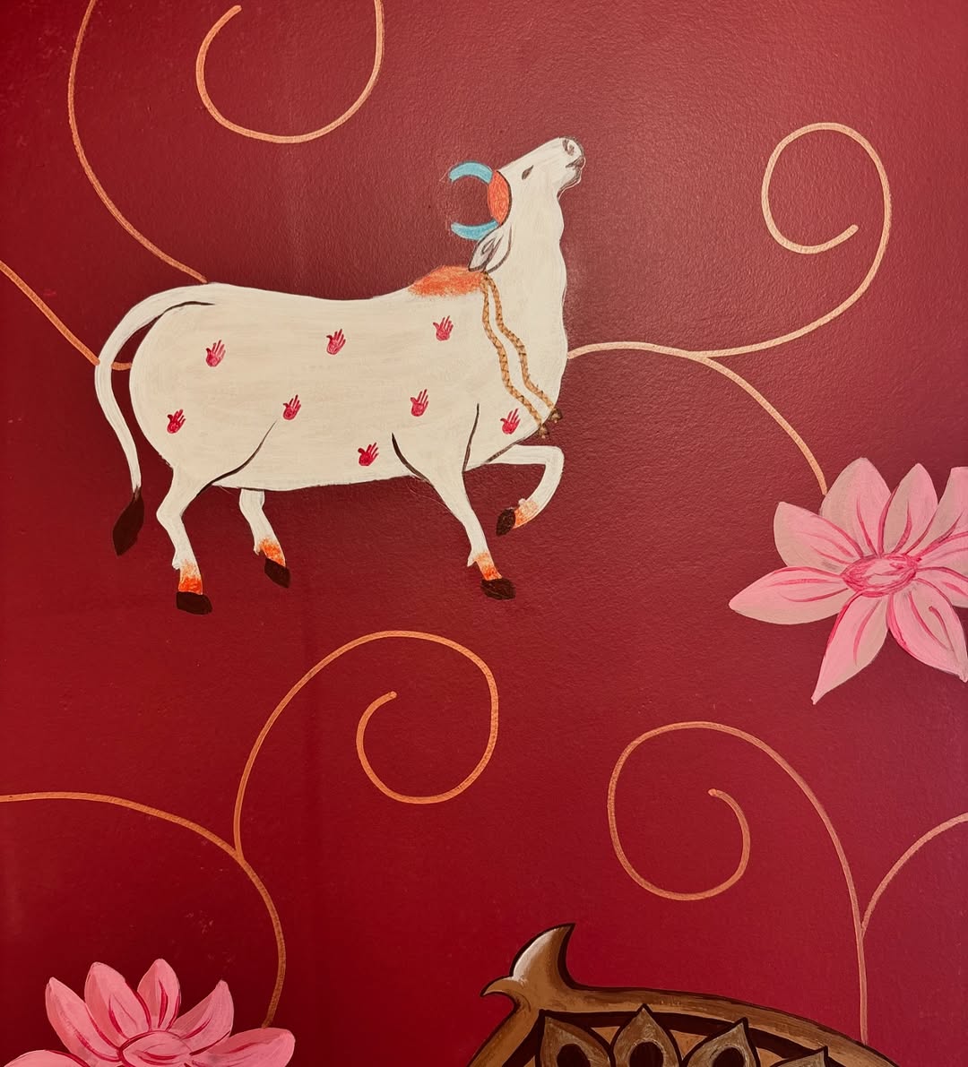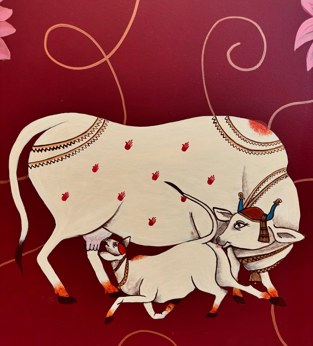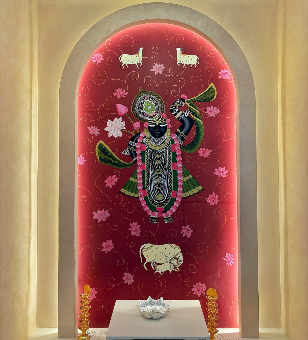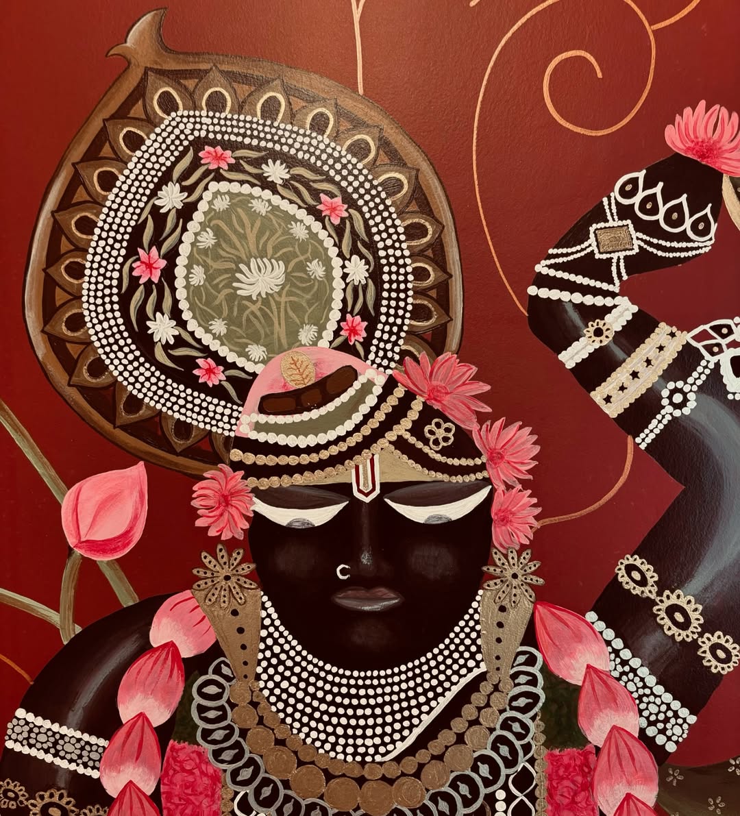 When the client wants a hand painted Krishna portrait on a red background for the pooja room ♥️
